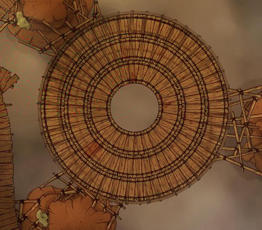 This set comes with a free Bird Cage asset; this tile can be placed on the "Bird Cage" and "Sky Village" maps, which can be removed/hidden in VTT if players are to fight in the arena.